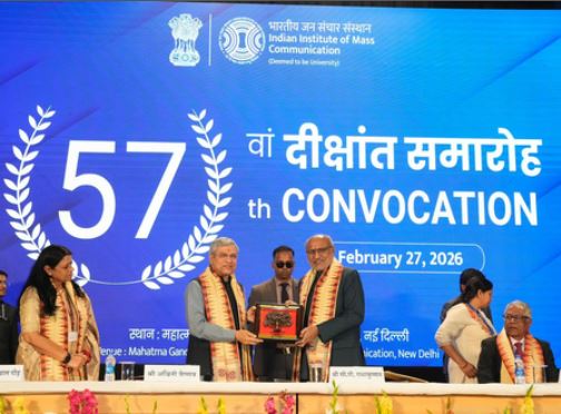 नई दिल्ली। भारत के उपराष्ट्रपति सीपी राधाकृष्णन ने शुक्रवार को नई दिल्ली में भारतीय जनसंचार संस्थान (आईआईएमसी) के 57वें दीक्षांत समारोह को संबोधित किया। स्नातक छात्रों को हार्दिक बधाई देते हुए, उपराष्ट्रपति ने कहा कि आईआईएमसी की स्थापना लगभग छह दशक पहले हुई थी और तब से इसने पत्रकारों और संचार पेशेवरों की कई पीढ़ियों को तैयार किया है जिन्होंने भारत के लोकतंत्र और सार्वजनिक जीवन में विशिष्ट योगदान दिया है। जनवरी 2024 में आईआईएमसी के डीम्ड यूनिवर्सिटी में परिवर्तित होने का जिक्र करते हुए, उपराष्ट्रपति ने विश्वास व्यक्त किया कि आईआईएमसी देश के प्रमुख जनसंचार संस्थान के रूप में अपनी विरासत को कायम रखेगा। उन्होंने मीडिया नवाचार और उद्यमिता को बढ़ावा देने के लिए परिसर में स्थापित किए गए इनक्यूबेशन केंद्रों की भी सराहना की। मीडिया जगत में आए बदलावों पर विचार करते हुए उपराष्ट्रपति ने कहा कि कृत्रिम बुद्धिमत्ता (एआई), डेटा विश्लेषण, आकर्षक कहानी कहने की कला और सोशल प्लेटफॉर्म ने स्टोरीज के निर्माण और उपभोग के तरीके को पूरी तरह से बदल दिया है। उन्होंने एवीजीसी क्षेत्र, एनिमेशन, विजुअल इफेक्ट्स, गेमिंग और कॉमिक्स तथा व्यापक रचनाकार अर्थव्यवस्था के बढ़ते महत्व पर प्रकाश डाला। उन्होंने कहा कि प्रधानमंत्री नरेंद्र मोदी के नेतृत्व में सरकार ने विश्व स्तरीय प्रतिभा और नवाचार को बढ़ावा देने के लिए राष्ट्रीय एवीजीसी-एक्सआर मिशन और उत्कृष्टता केंद्र जैसी पहल शुरू की हैं। उन्होंने इच्छुक छात्रों को संसद टीवी के साथ इंटर्नशिप और प्रोजेक्ट के अवसरों की खोज के लिए भी आमंत्रित किया।