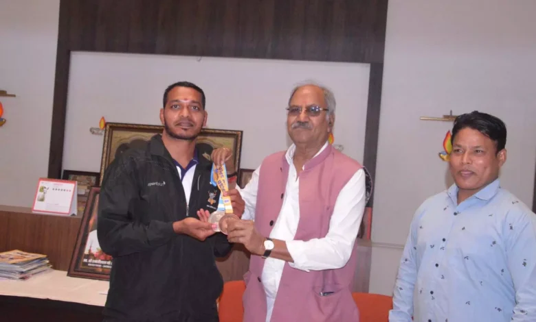 नेशनल ब्रॉन्ज़ मेडल विजेता पहलवान मनोज साहू ने सांसद बृजमोहन अग्रवाल से की मुलाकात ।