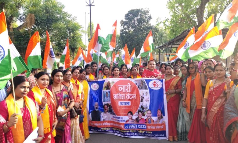नारी शक्ति वंदन अधिनियम के समर्थन में भव्य पदयात्रा, महिलाओं की ऐतिहासिक भागीदारी।